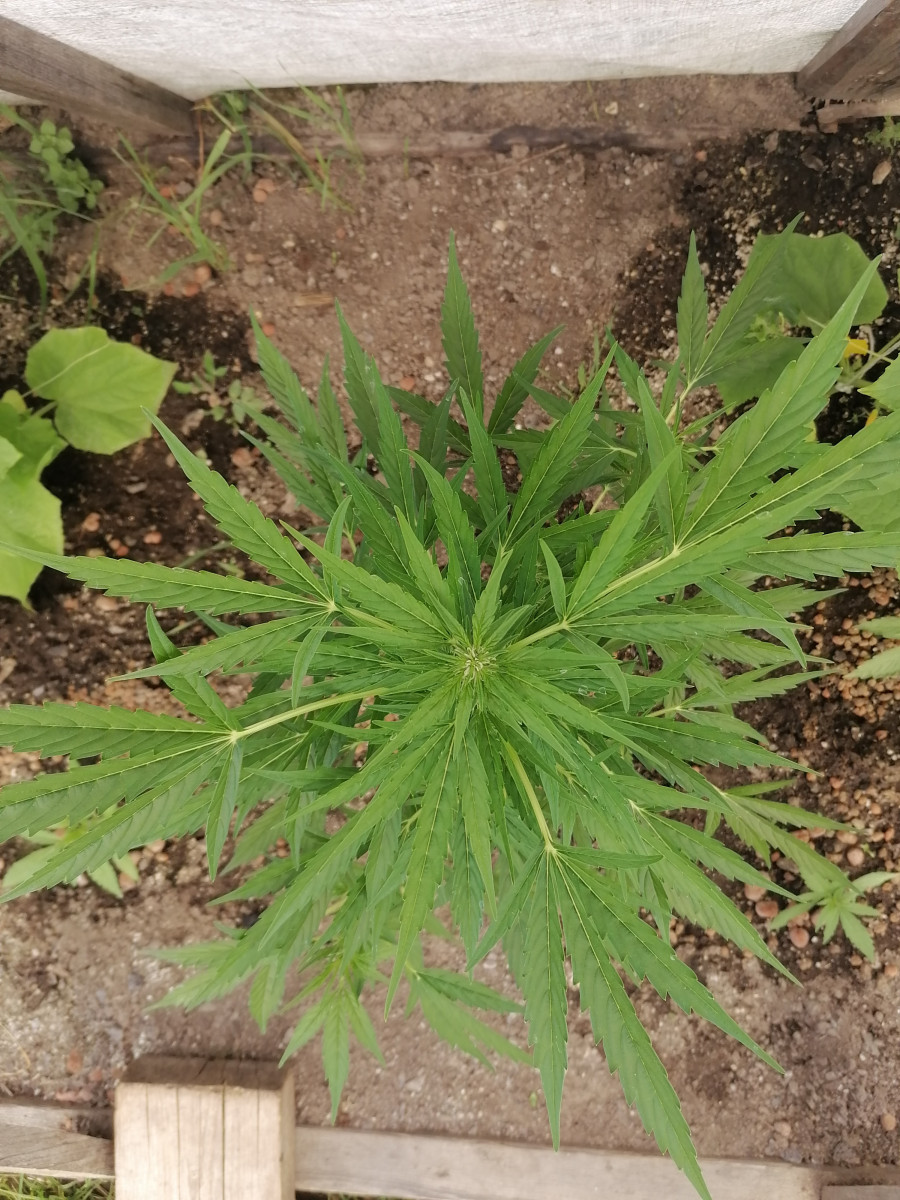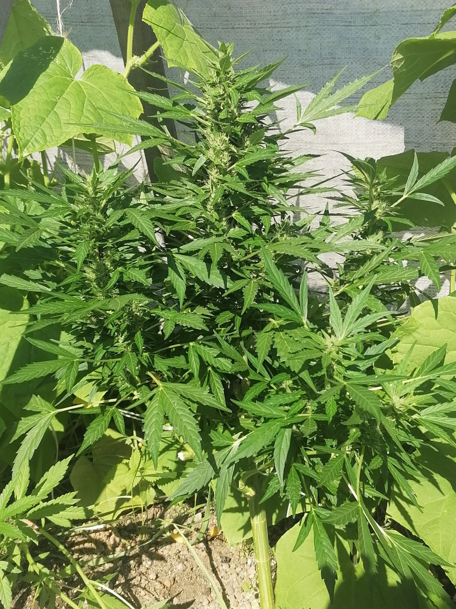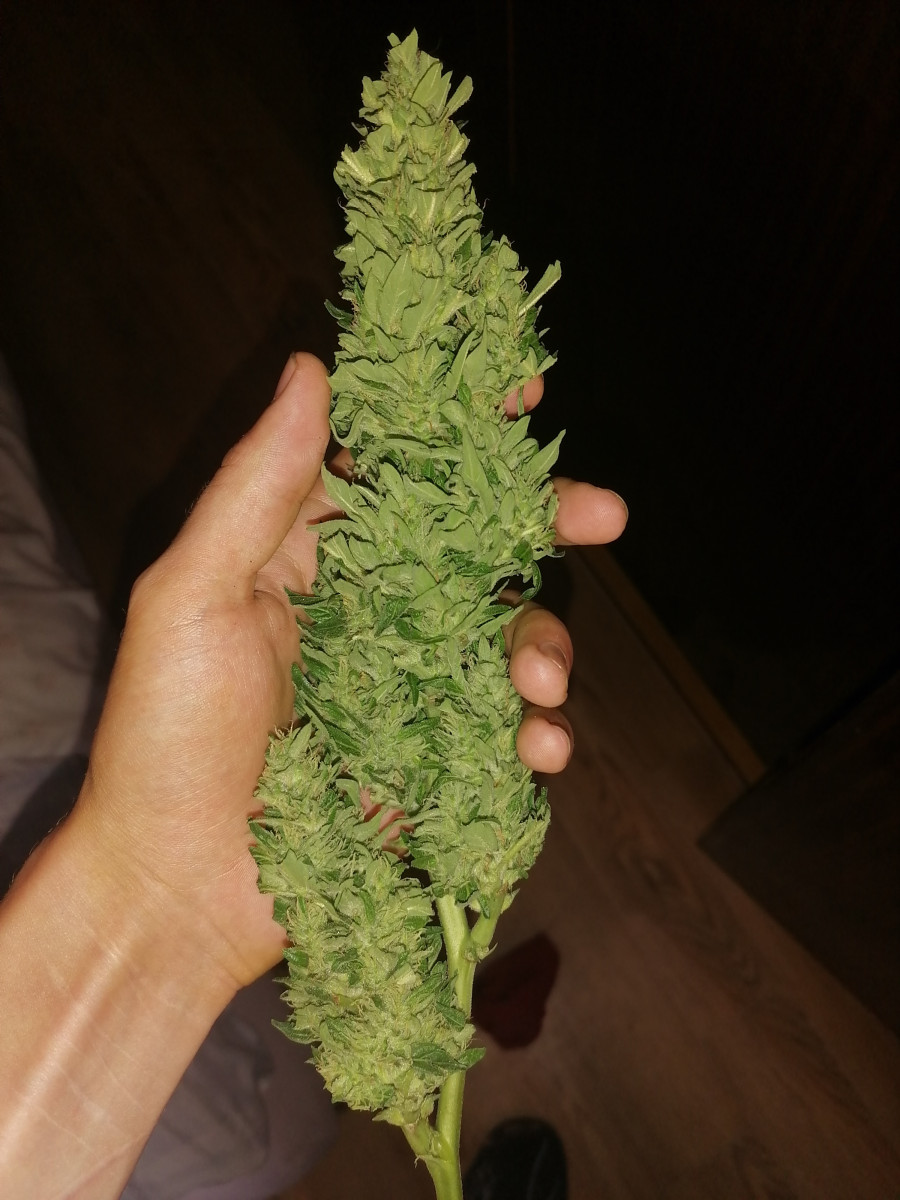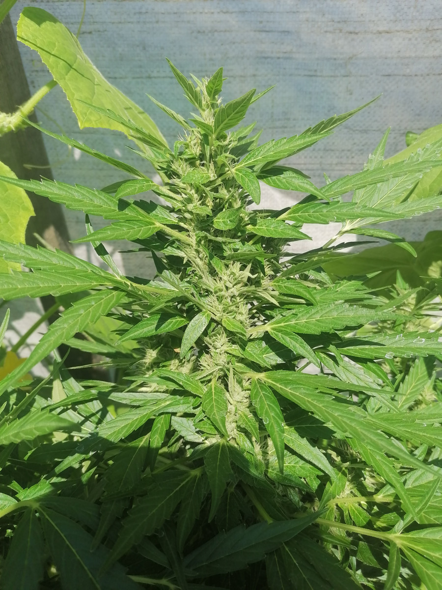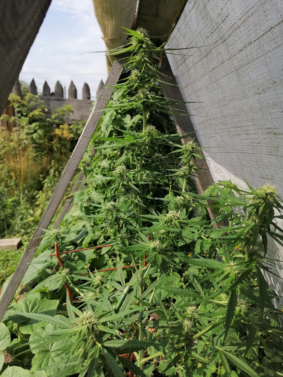 Растиха выжила при 2-х недельном отсутствии солнца, холоде (+7°С), и вот наконец зацвела, на фото 56 дней (неделя цвета), рост 60 см. Впереди ещё 40-50 дней цвета, надеюсь вымахает ещё) Пожелайте удачи, братья раста и гроверы)