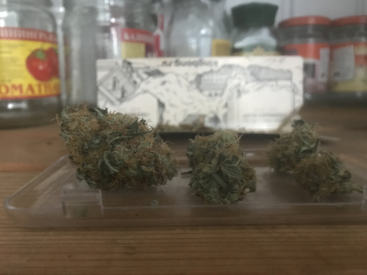 - Общие впечатленияОчередная подарочная семечка от Семяныча) Буквально сегодня дал попробовать коллегам на работе (один курил месяц назад, второй с молодости не курил), оба выпали. Я думаю состояние *бледного* - это было о них) Или почти, но перед начальством они держались, но спалились)))) Хотя каждый по хорошей тяге сделал, и только. В общем по силе - это что-то) Я вообще сативу никогда не любил и не люблю, но этот пожалуй исключение. Буквально со второго бонга это уже будет индика))) Послевкусие, как уже кто-то писал, типичное хейзовое, очень приятное. В общем это прекрасный цветок, единственным недостатком которого я выделю малую урожайность. В этот раз с корректировками: 10л грунта (пш6) + 2 л вермикулита. От керамзита отказался в силу хорошо специального горшка. Вермикулита всего 2 л. так-как у меня нету проблем с обеспечением влагой, и отсутствует необходимость её длительного сохранения в почве. Азот с восделкой сразу в грунт. Далее универсальные удобрения (см. прошлый отзыв) на конце веги/начале цвета. Далее СУПЕР удобряха для цвета Фертика Люкс (протестировано лично мною на многих видах культур). Рипен, как уже говорилось, мы не уважаем и не признаем. 10 дней промывки (на самом деле ждите пока выходящая вода не станет прозрачной, не обязательно дрюкать куст постоянными стрессами из-за перелива как пишут в местных статьях). Про темноту - тоже смех. Можете её пожечь зажигалкой или нассать в горшок - стресса будет не меньше. А вот не поливать определенное время перед харвом - это в плюс пойдет в дальнейшем. В этот раз тренировок не применял. Урожайка 29гр. Постарался расписать для тех, кому предстоит столкнуться с этим чудным цветком) Любит свет, но без переребора 18/6 для него идеал. Стрессоустойчив, но замедляется если борщить. Второе семя посаженное 6 числа взошло 14 (на полном серьезе, факт). И еще с десяток дней стояла плотной растихой в 4-5 см. Зато потом как на форсаже) Так что не паникуйте на стартах. Третий (и последний) реп будет об АУТе. Наглядно вам демонстрирую, что ЛЕДы на порядок лучше во всех аспектах, для домашнего гроува или небольших боксов. И добавлю что до пролечки, помимо силы она еще и дикая!) По-хорошему пару недель минимум в банке ей лучше дать, или привет желудку и сердечно-сосудистой особо впечатлительным, а на утро бобо в голове) Повторюсь еще раз - это сорт, не смотря на заявленные 20%, вздергивает куда хлеще сортов с 24-26% содержанием. P.S. на фото главная макушка, 6.2 гр.
