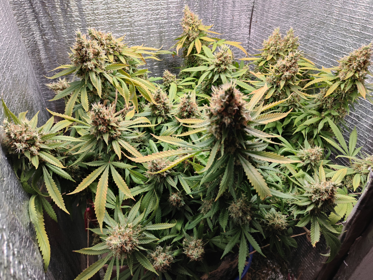 - Общие впечатленияПервый гров, поэтому некоторые вещи сравнить не с чем. Были косяки по свету и температуре с моей стороны. изначально придавил её светом, а под конец в боксе началась жара 30, с которой мне нечем было бороться. Результат - 141 гр. сухого и полтора литровая банка отличного тримма для экстракции. Всего от семки до харва прошло 113 дней. В цветение перевел на 40ой день. Эффект: мощное опьянение, расслабление, подъем настроения и всепоглощающий кабан. Сорт могу рекомендовать любителям индики, а я теперь посмотрю в сторону сативных сортов.