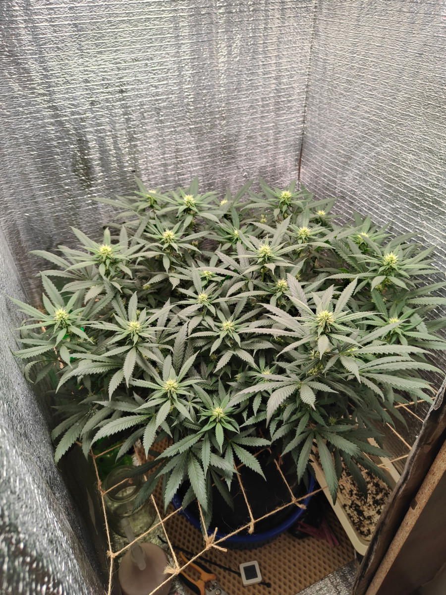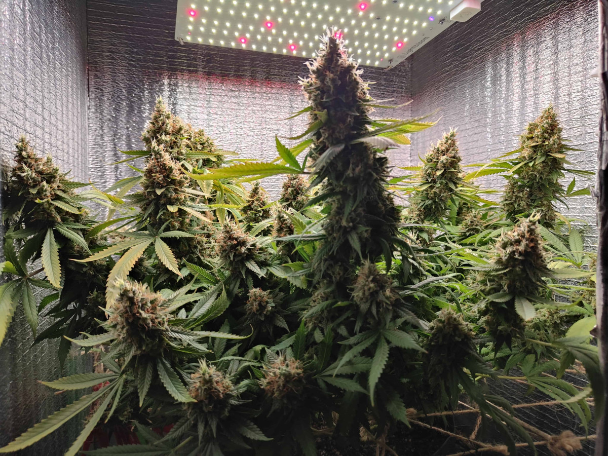 - Общие впечатленияСильный сорт, мой первый куст, думал что девочка будет повыше, но к недостаткам отнести не могу. Очень плотный куст, листвы очень много, расстояние между узлами маленькое, срезал очень много листвы чтобы воздух проходил. На фото менее двух недель как перевел в цветение, после сбора урожая напишу еще отзыв.
