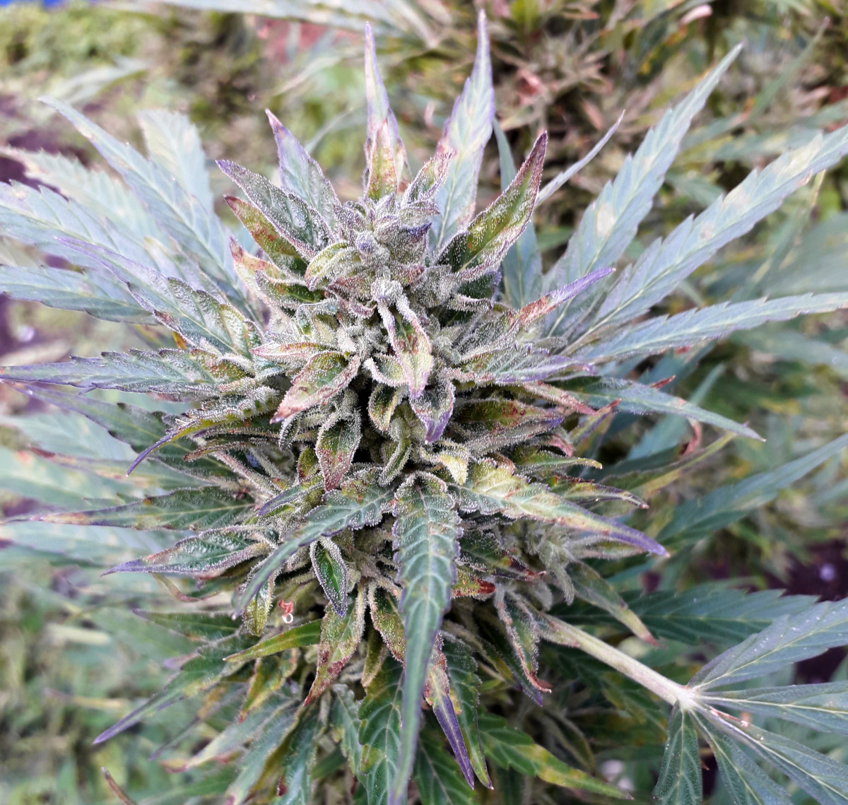 Господа гроверы, любители индичных, авто-цветов, советую обратить на данный сорт пристальное внимание! Очень хороший сорт, единственный его недостаток, при выращивании может выхватывать плесень, учитывайте это, для своих регионов и климатических условий. И ещё, в Сибирских широтах, он долго растёт, но на солнечном месте, вырастает спокойно, до двух метров. Тут на фото показан недозревший кустик, и только верхняя часть куста, пришлось срубить раньше срока, из за сильных дождей и быстро развивающейся плесени. Но и в недозревшем виде, после сушки и пролечки, довольно неплох. Всем МИР!!!